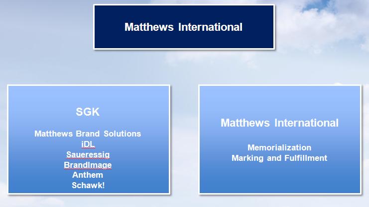 This document contains forward-looking statements within the meaning of the Private Securities Litigation Reform Act of 1995. Those forward-looking statements are subject to various risks and uncertainties. Forward-looking statements are generally identifiable by use of forward-looking terminology such as "may," "will," "should," "potential," "intend," "expect," "seek," "anticipate," "estimate," "believe," "could," "would," "project," "predict," "continue," "plan" or other similar words or expressions. Such statements are based upon the current beliefs and expectations of Matthews' management and are subject to significant risks and uncertainties. Actual results may differ from those set forth in the forward-looking statements. Factors which could have a material adverse effect on our operations and future prospects or which could cause events or circumstances to differ from the forward-looking statements include, but are not limited to, risks relating to the merger with SGK, including in respect of the satisfaction of closing conditions to the merger; unanticipated difficulties and/or expenditures relating to the merger; the risk that regulatory approvals required for the merger are not obtained or are obtained subject to conditions that are not anticipated; uncertainties as to the timing of the merger; litigation relating to the merger; the impact of the transaction on relationships with customers, employees and third parties; and the inability to obtain, or delays in obtaining cost savings and synergies from the merger; as well as other risks detailed from time to time in our filings with the Securities and Exchange Commission, including our Annual Report on Form 10-K and Quarterly Reports on Form 10-Q. We expressly disclaim any obligation to release publicly any updates or revisions to any forward-looking statements contained herein to reflect any change in our expectations with regard thereto or change in events, conditions or circumstances.