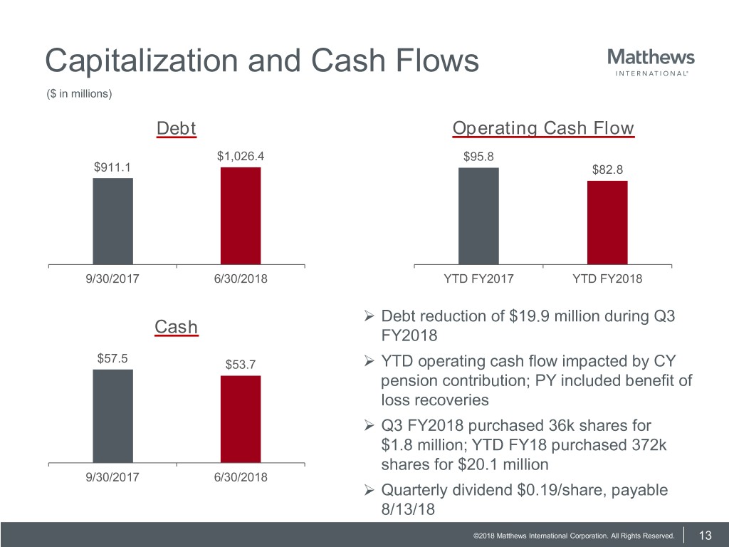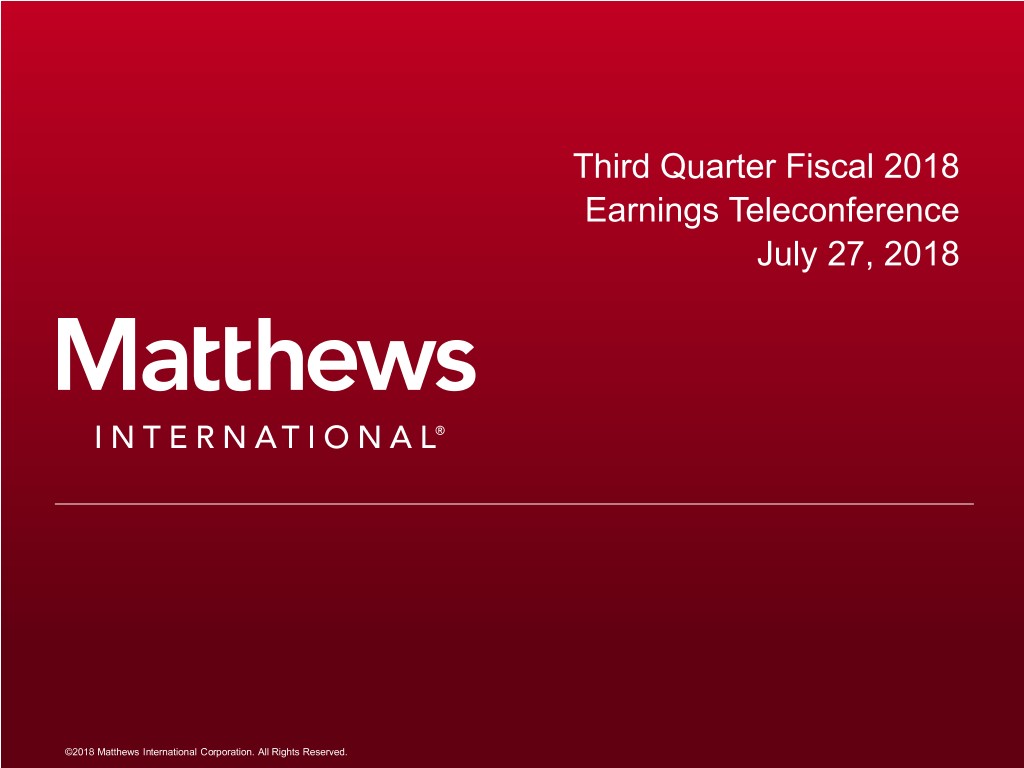 Third Quarter Fiscal 2018 Earnings Teleconference July 27, 2018 ©2018 Matthews International Corporation. All Rights Reserved.