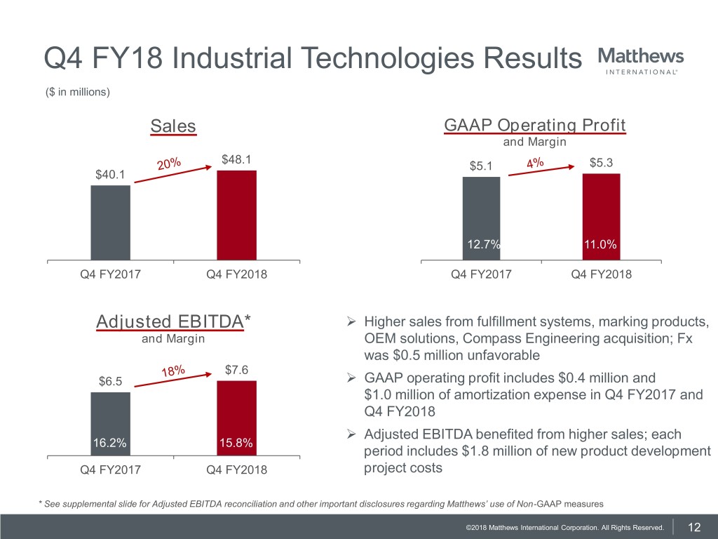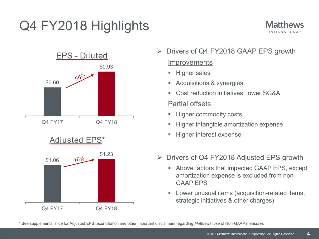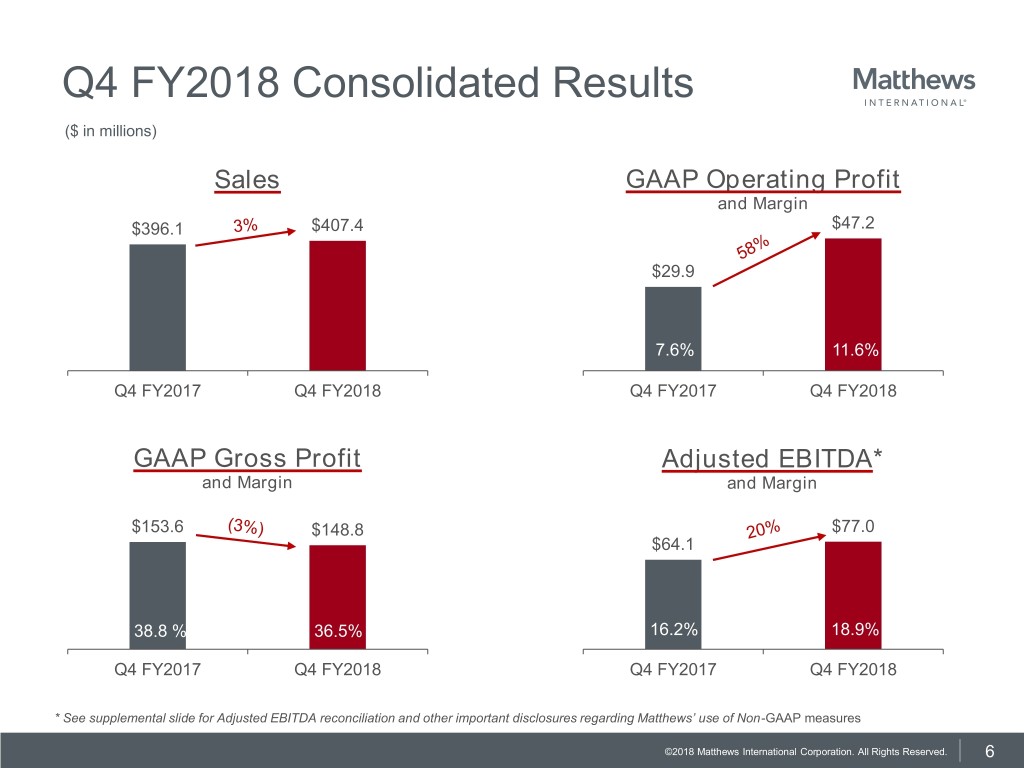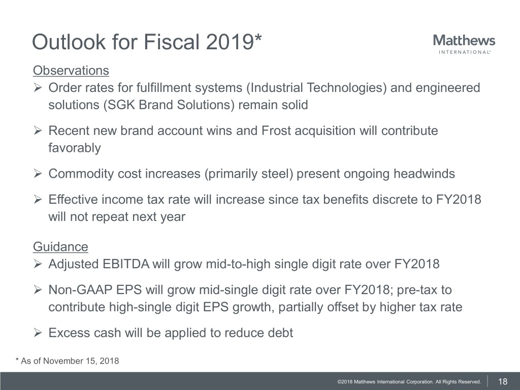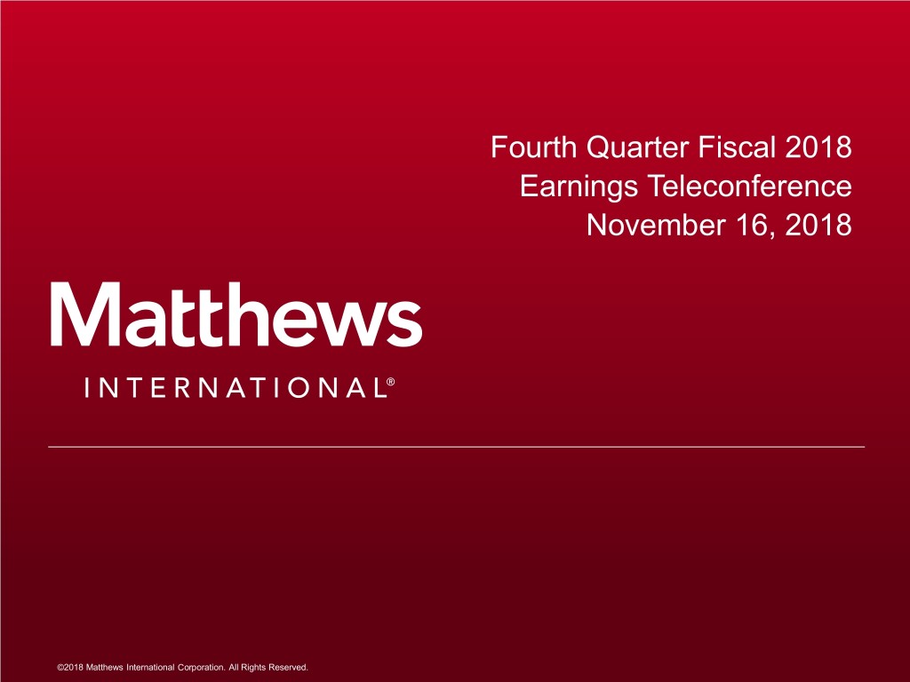 Fourth Quarter Fiscal 2018 Earnings Teleconference November 16, 2018 ©2018 Matthews International Corporation. All Rights Reserved.