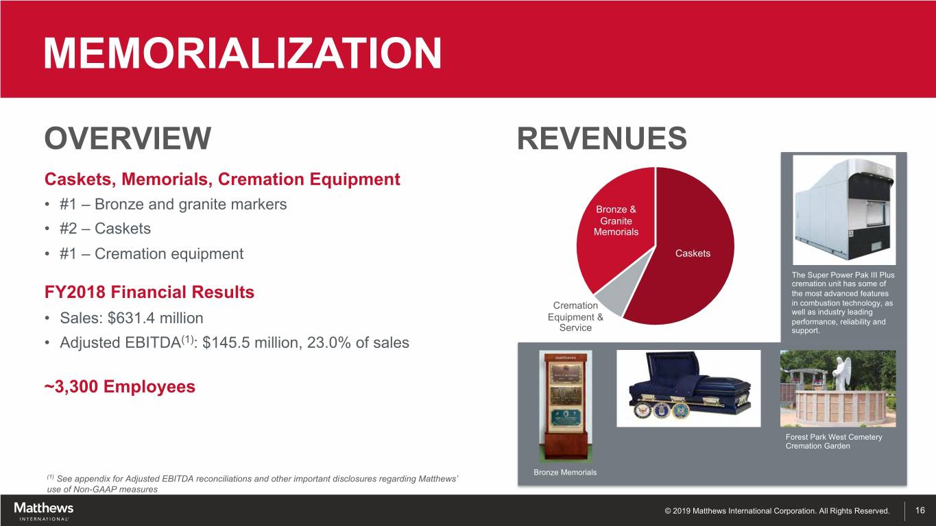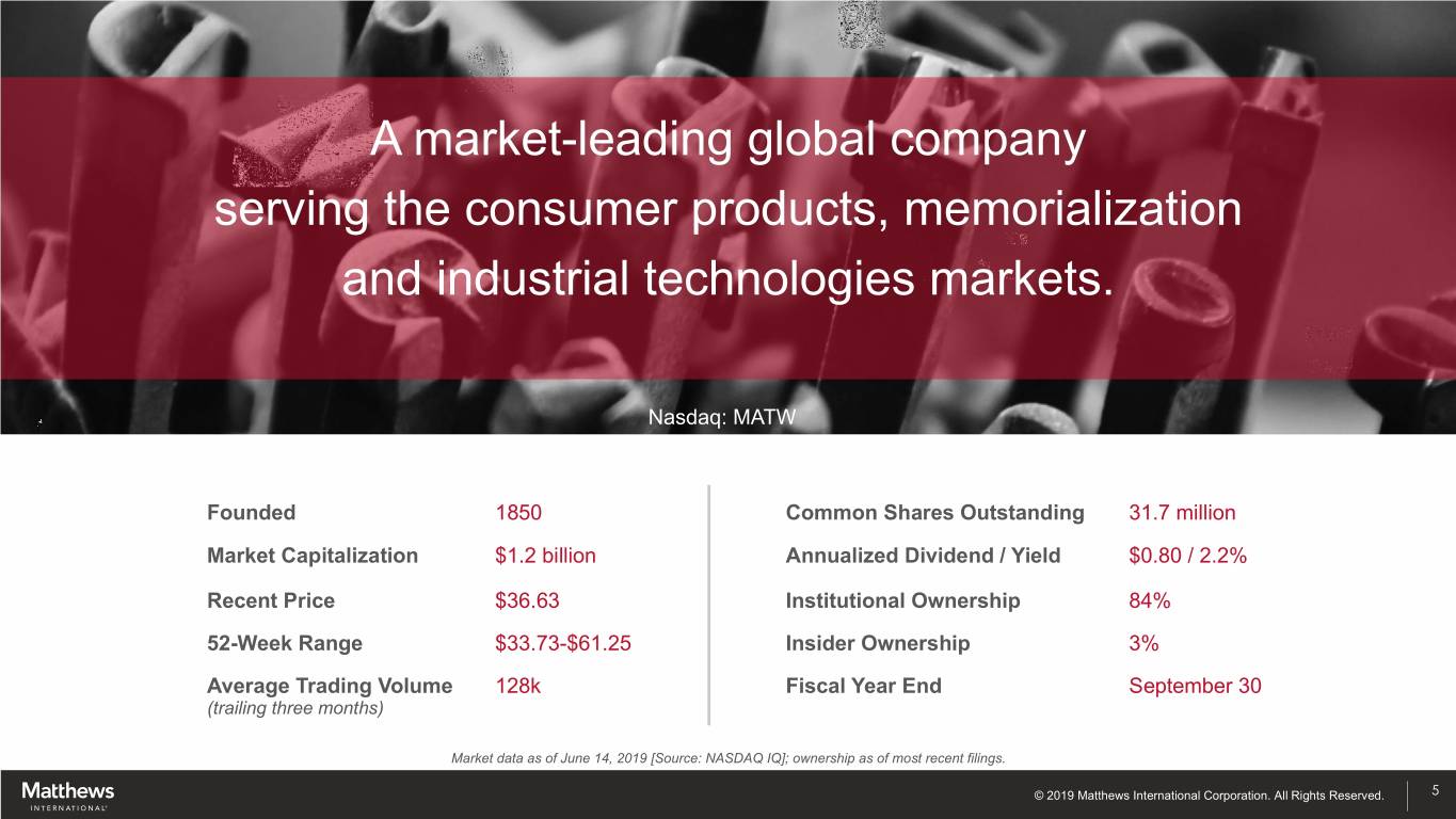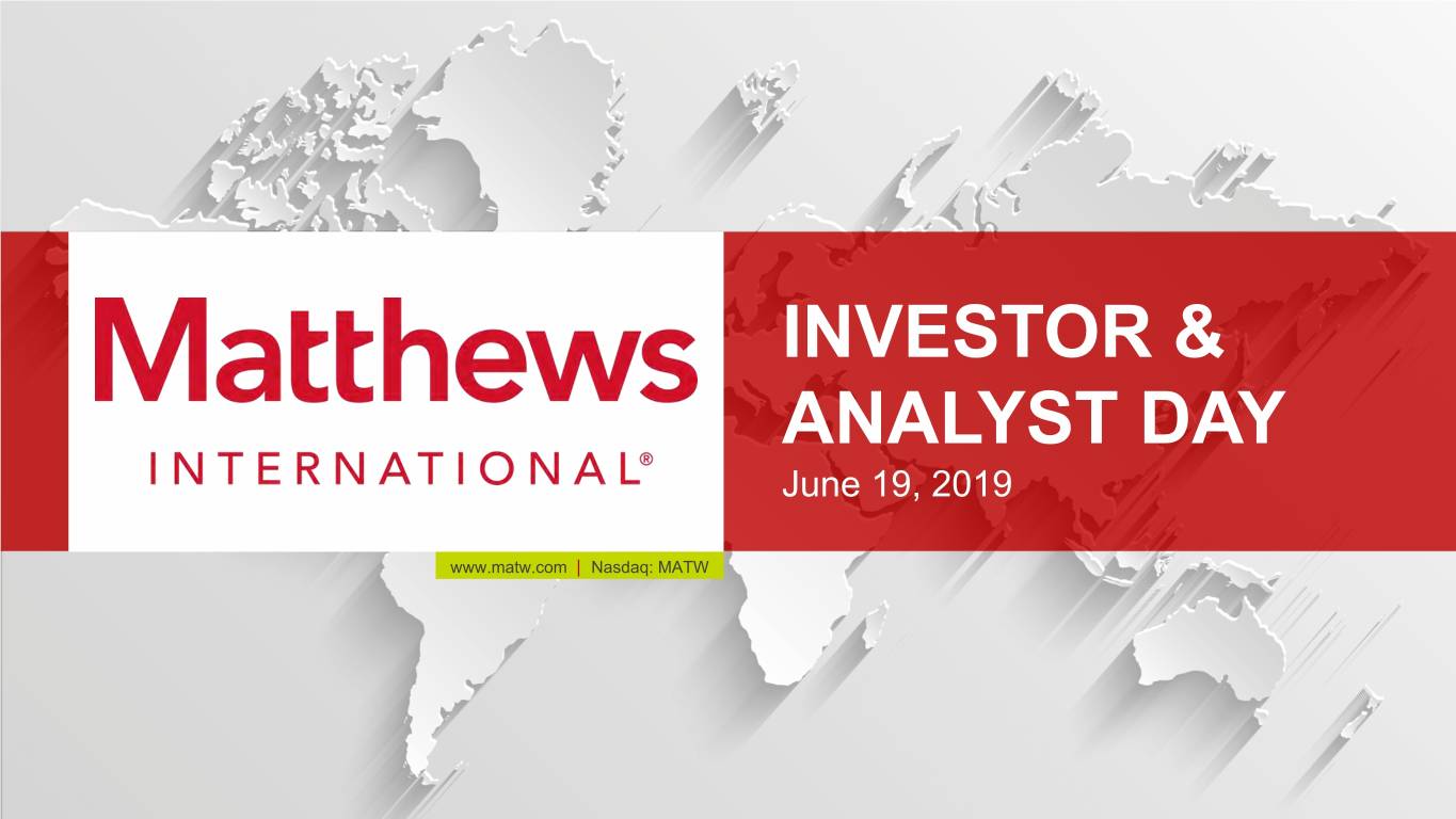 INVESTOR & ANALYST DAY June 19, 2019 www.matw.com | Nasdaq: MATW © 2019 Matthews International Corporation. All Rights Reserved.