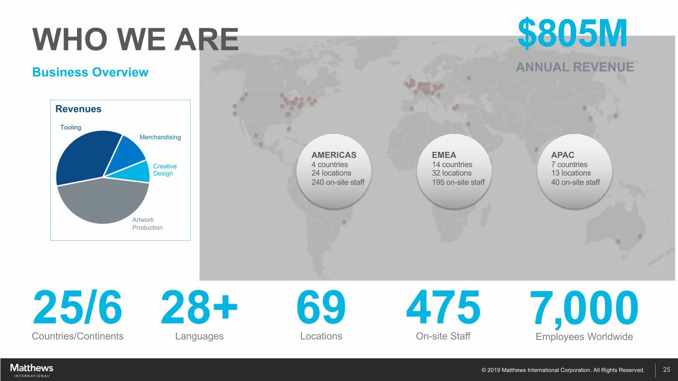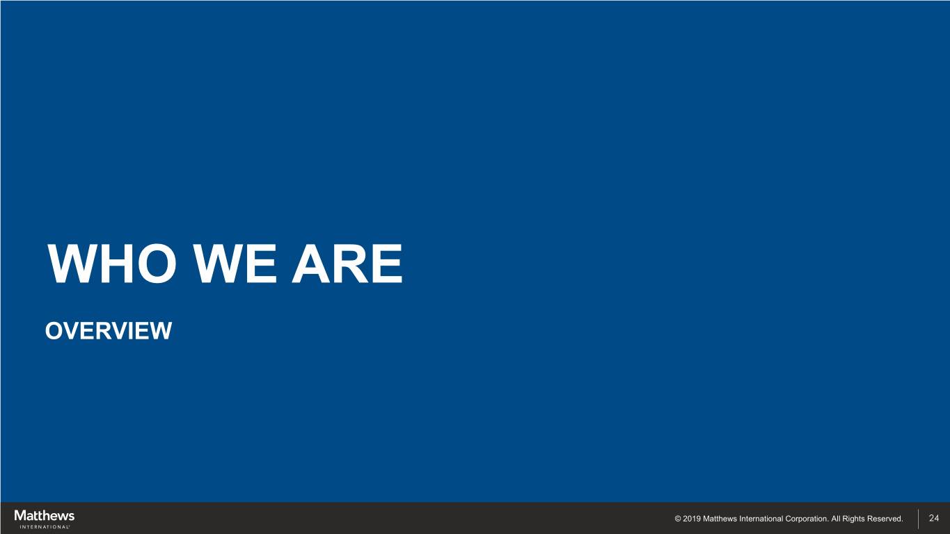 WHO WE ARE OVERVIEW © 2019 Matthews International Corporation. All Rights Reserved. 24
