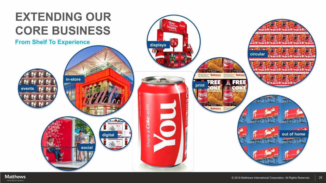 EXTENDING OUR CORE BUSINESS From Shelf To Experience displays circular in-store print events digital out of home social © 2019 Matthews International Corporation. All Rights Reserved. 28