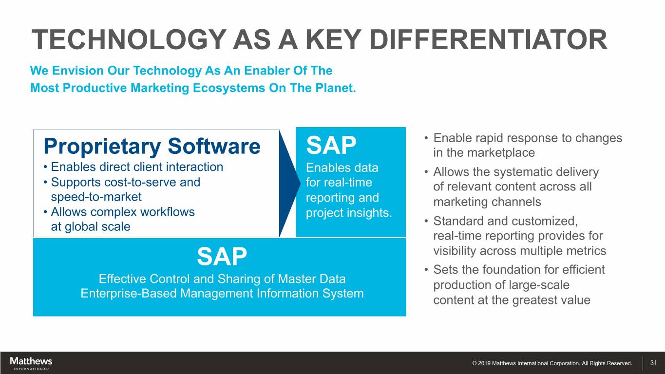 HOW WE DO IT TECHNOLOGY AND SCALE © 2019 Matthews International Corporation. All Rights Reserved. 29