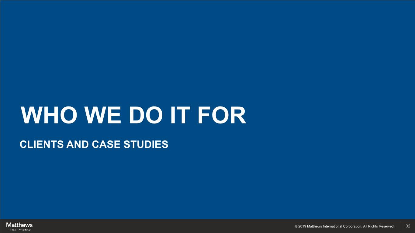 WHO WE DO IT FOR CLIENTS AND CASE STUDIES © 2019 Matthews International Corporation. All Rights Reserved. 32