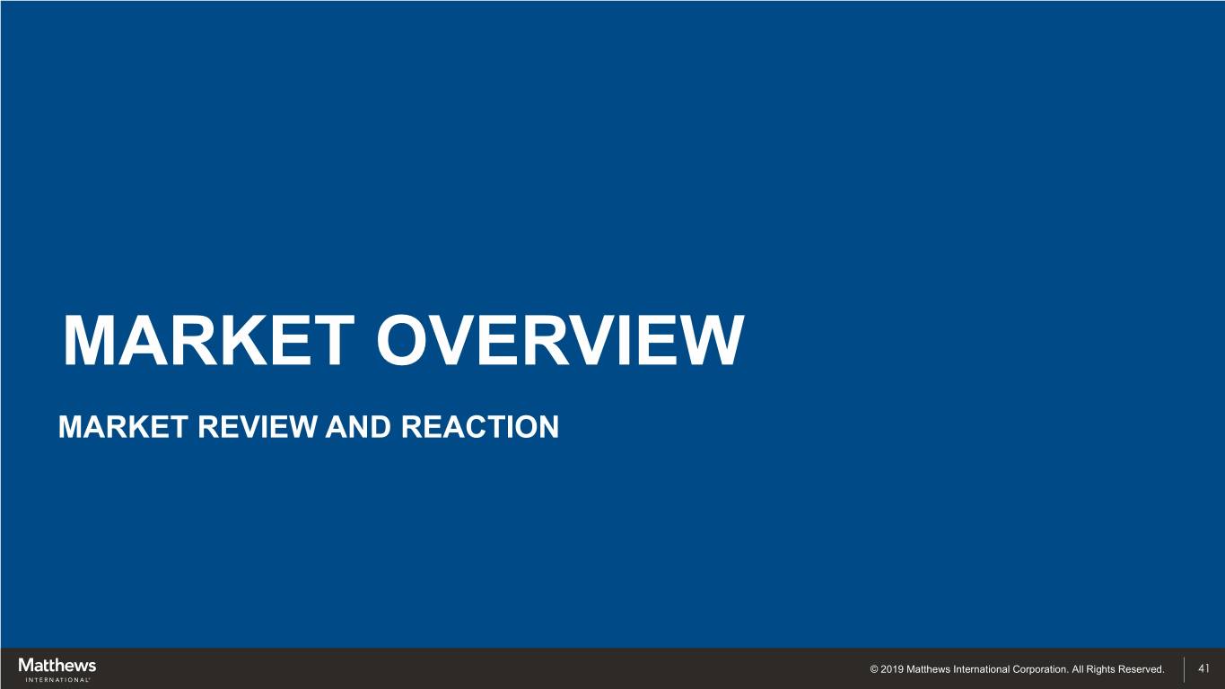 MARKET OVERVIEW MARKET REVIEW AND REACTION © 2019 Matthews International Corporation. All Rights Reserved. 41