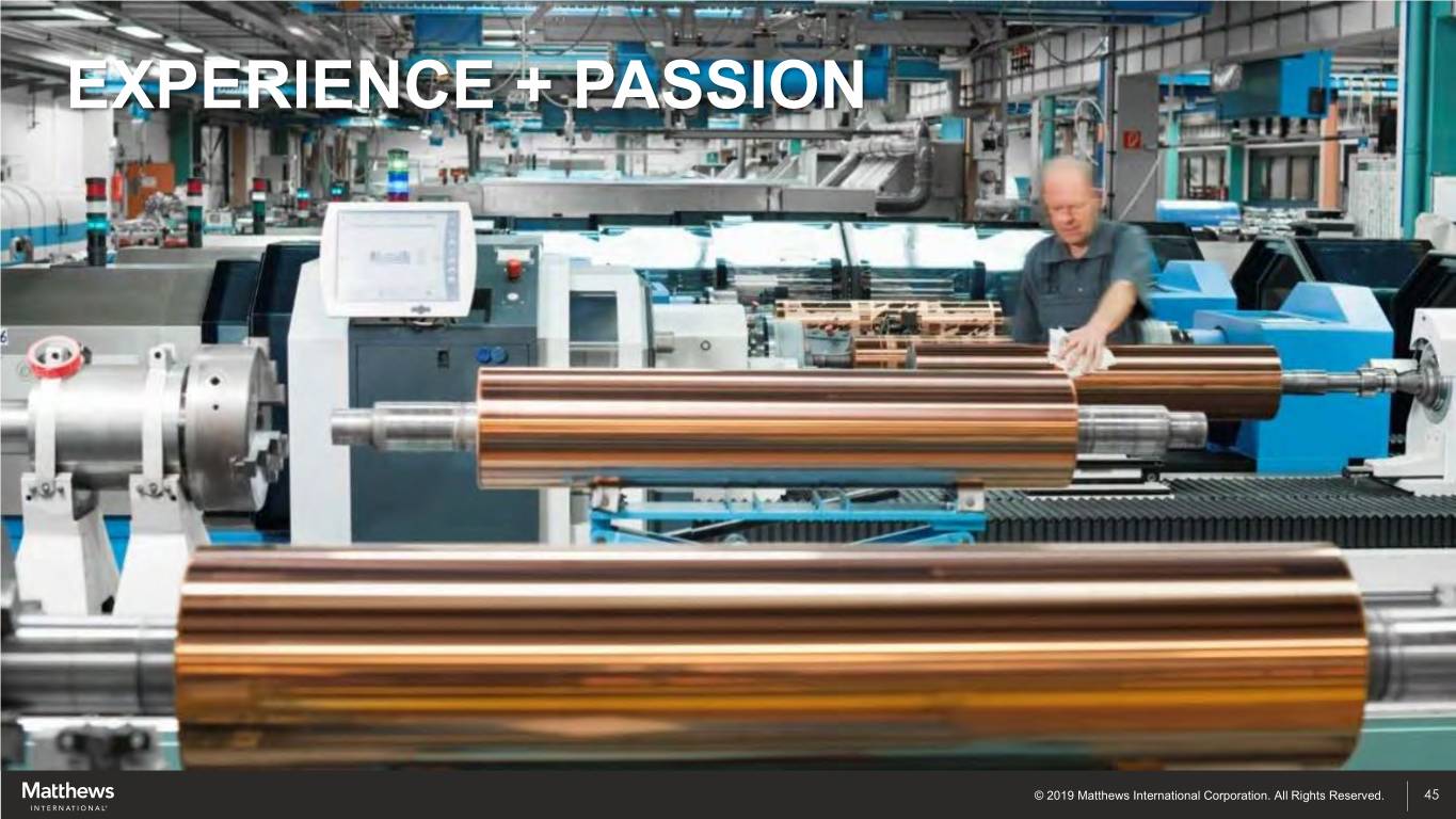 EXPERIENCE + PASSION © 2019 Matthews International Corporation. All Rights Reserved. 45