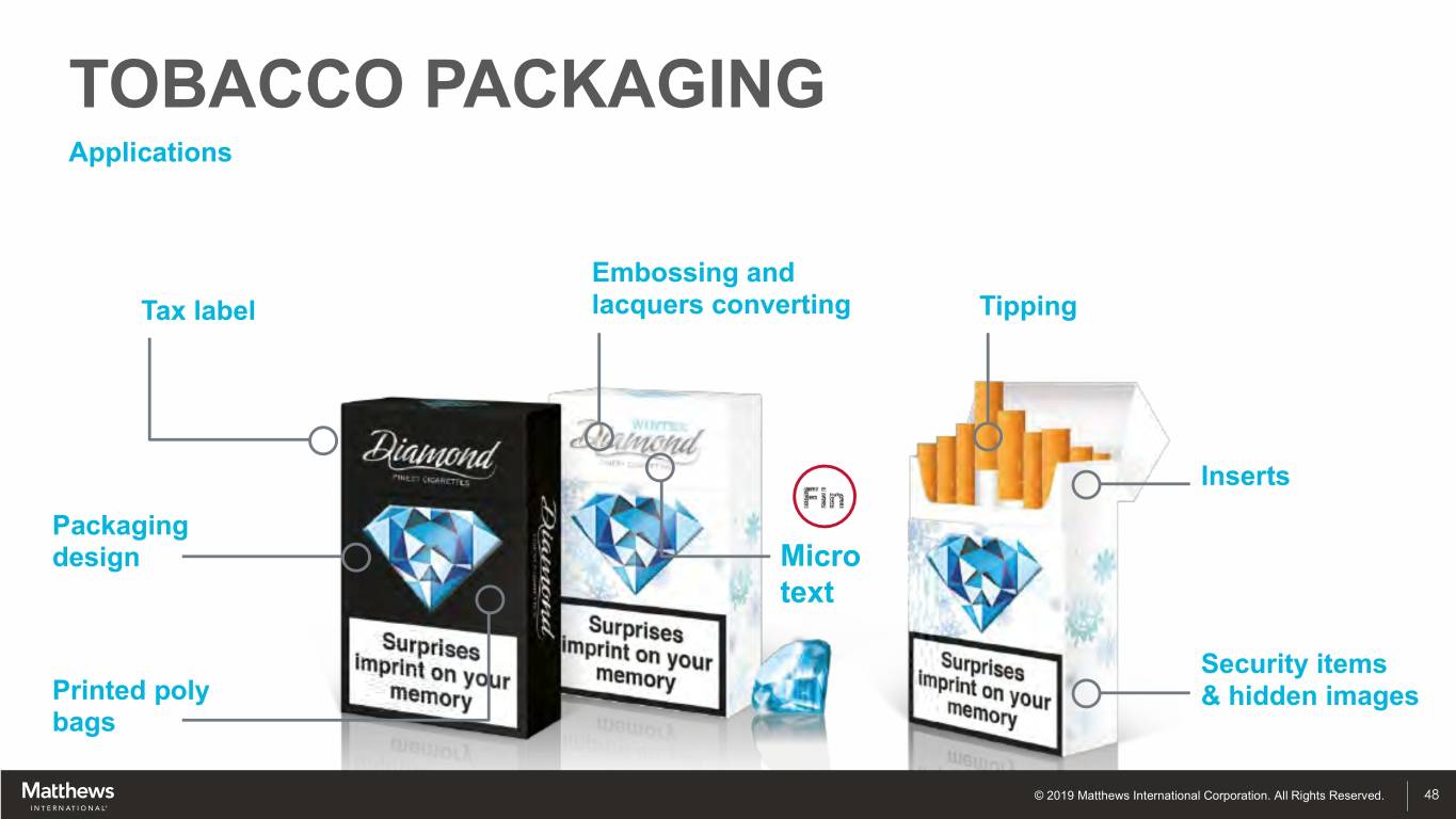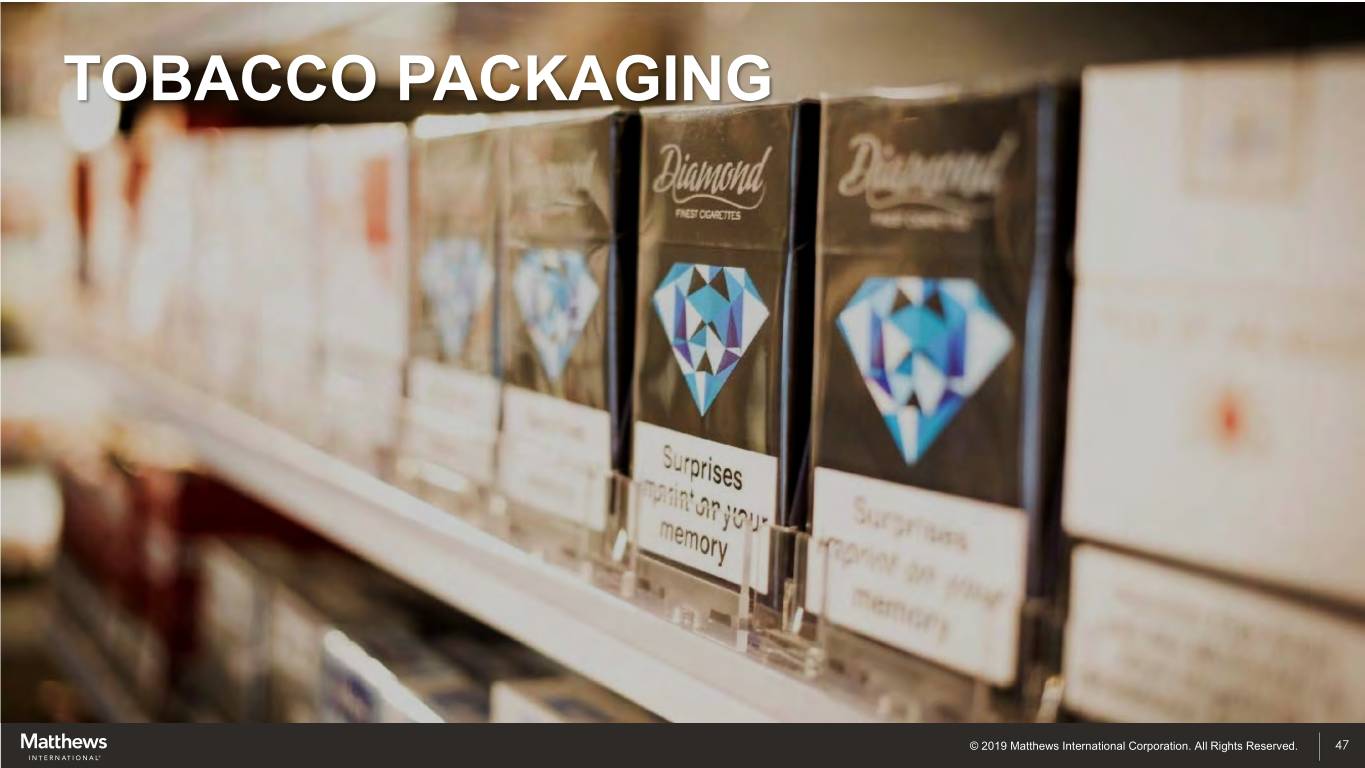 TOBACCO PACKAGING © 2019 Matthews International Corporation. All Rights Reserved. 47
