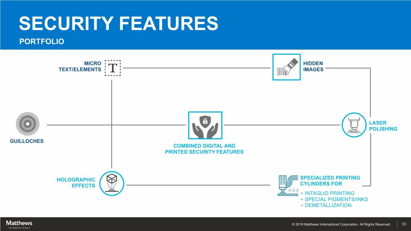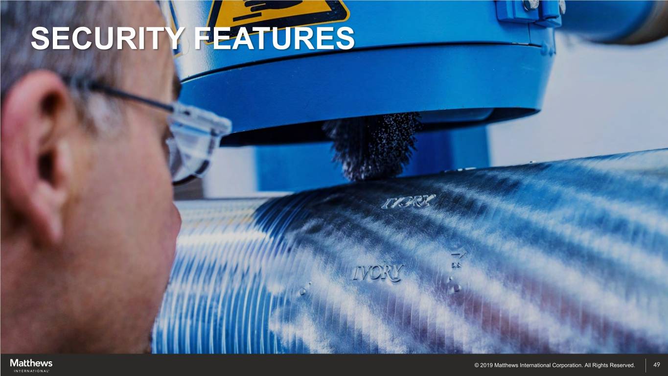 SECURITY FEATURES © 2019 Matthews International Corporation. All Rights Reserved. 49