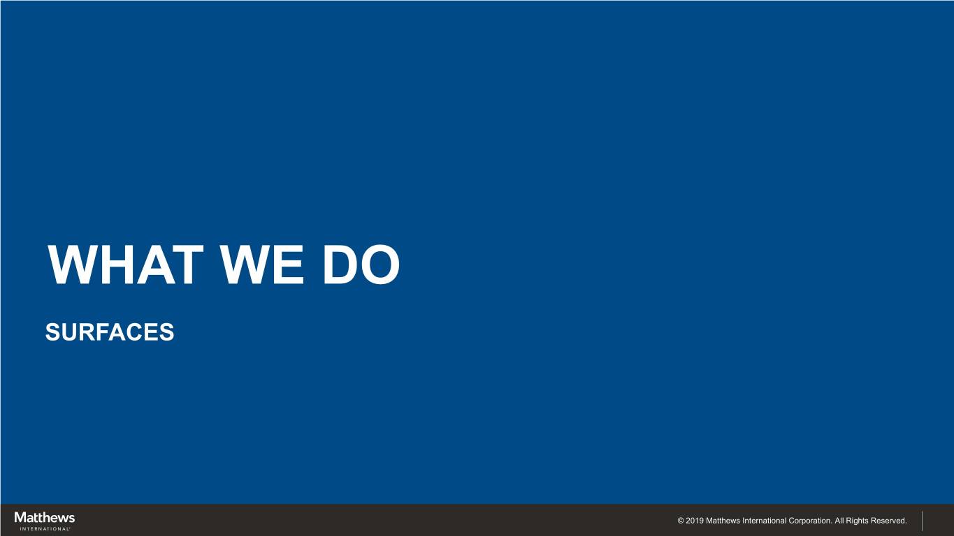 WHAT WE DO SURFACES © 2019 Matthews International Corporation. All Rights Reserved.