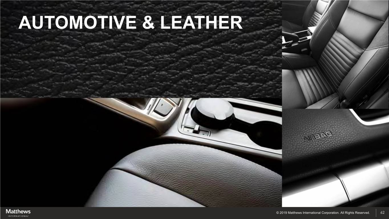 AUTOMOTIVE & LEATHER © 2019 Matthews International Corporation. All Rights Reserved. 62