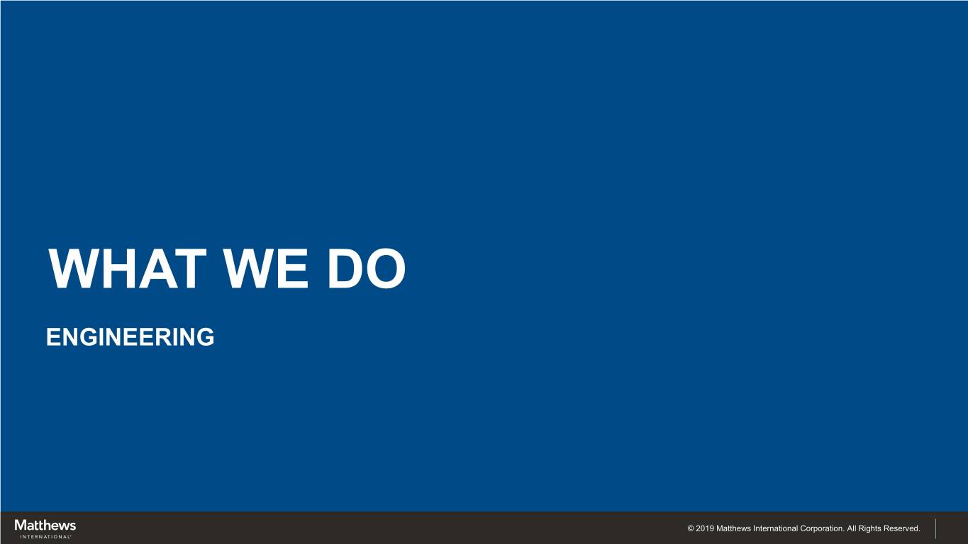 WHAT WE DO ENGINEERING © 2019 Matthews International Corporation. All Rights Reserved.