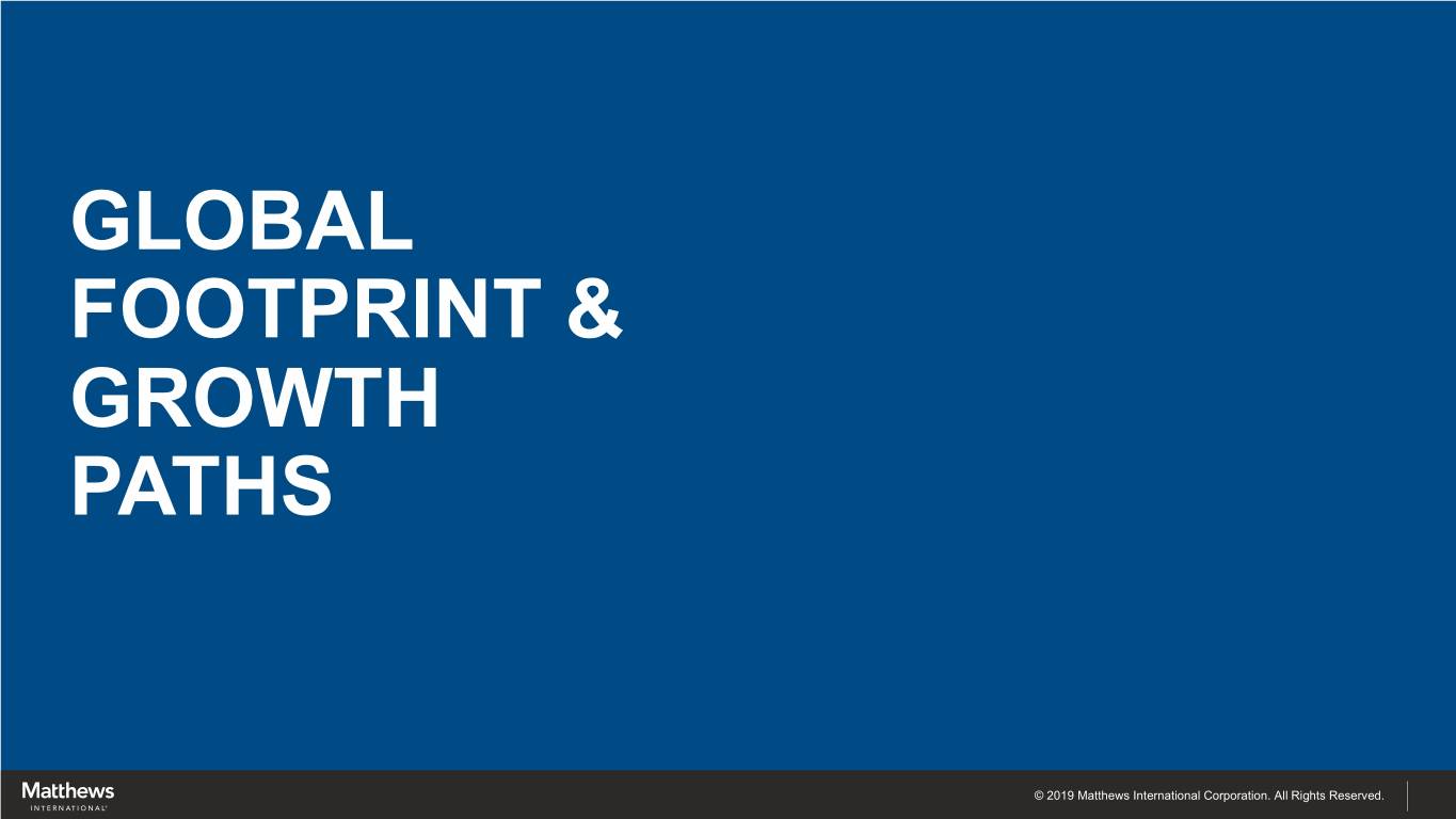 GLOBAL FOOTPRINT & GROWTH PATHS © 2019 Matthews International Corporation. All Rights Reserved.