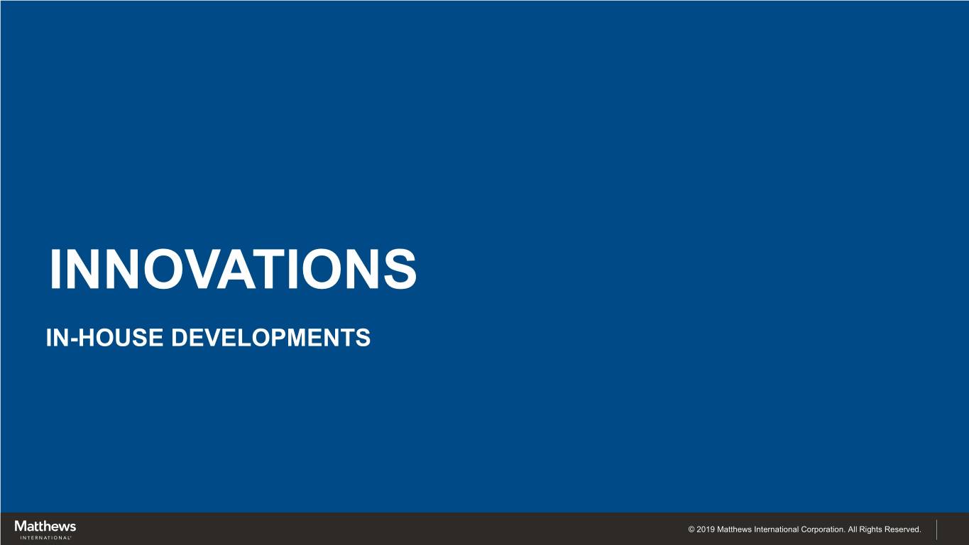 INNOVATIONS IN-HOUSE DEVELOPMENTS © 2019 Matthews International Corporation. All Rights Reserved.