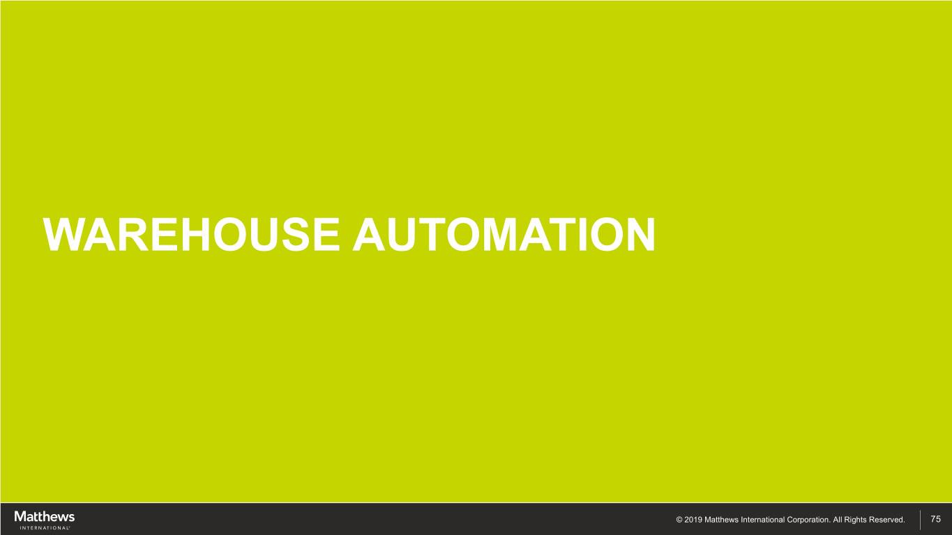 WAREHOUSE AUTOMATION © 2019 Matthews International Corporation. All Rights Reserved. 75