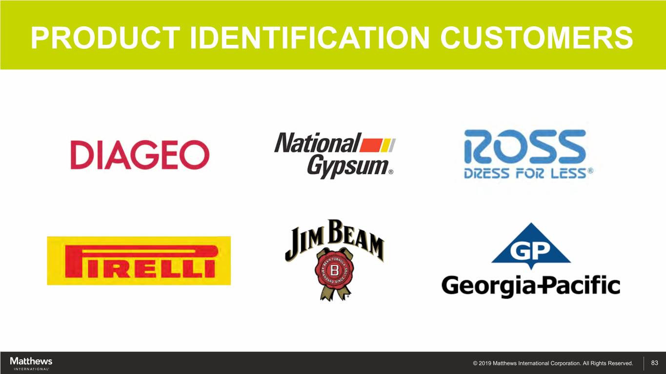 PRODUCT IDENTIFICATION CUSTOMERS © 2019 Matthews International Corporation. All Rights Reserved. 83