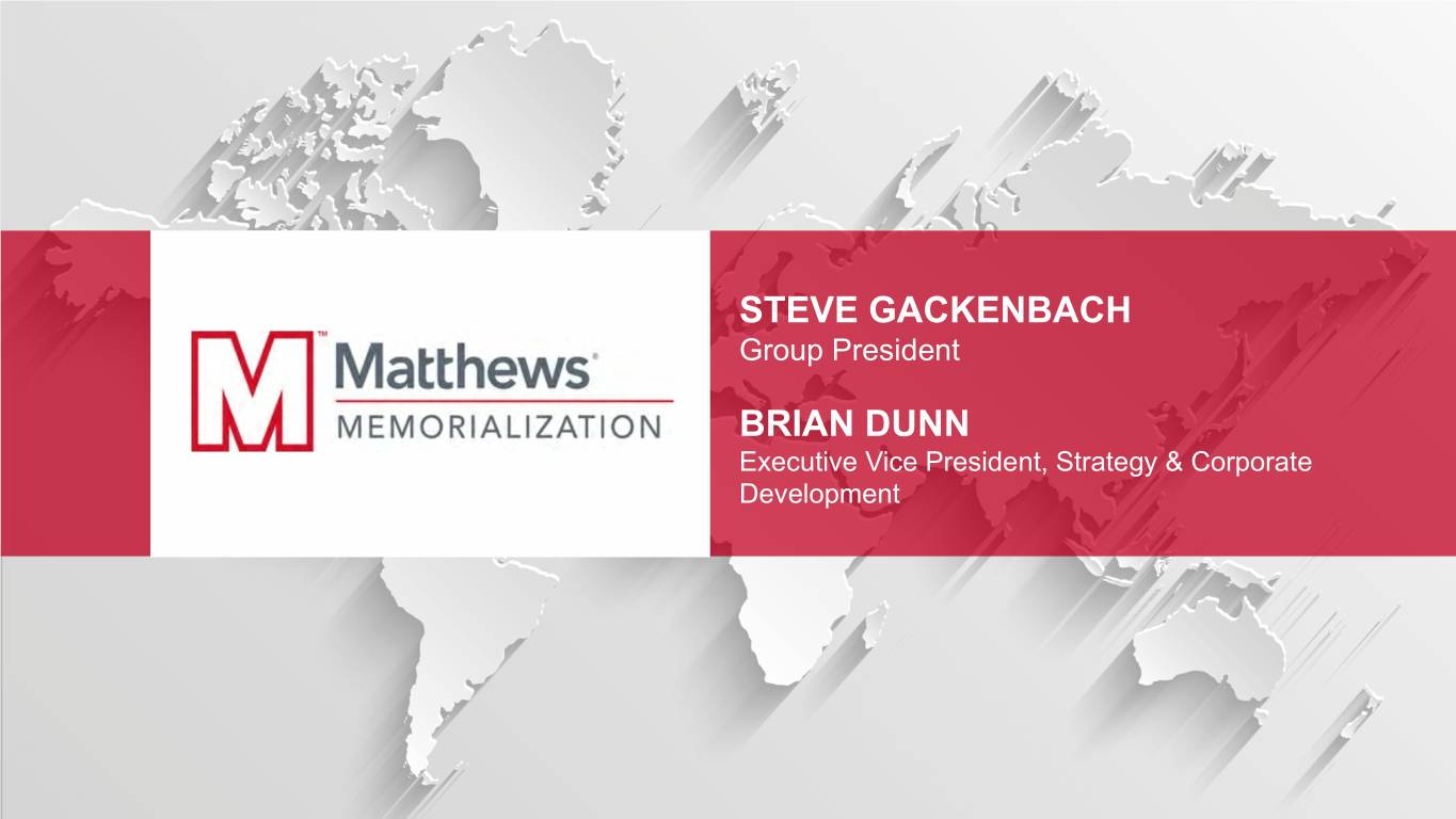 STEVE GACKENBACH Group President BRIAN DUNN Executive Vice President, Strategy & Corporate Development © 2019 Matthews International Corporation. All Rights Reserved.