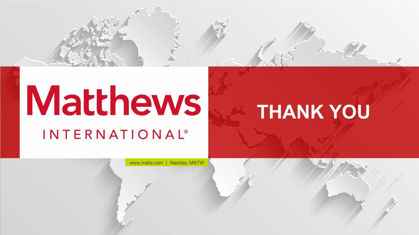 THANK YOU www.matw.com | Nasdaq: MATW © 2019 Matthews International Corporation. All Rights Reserved.