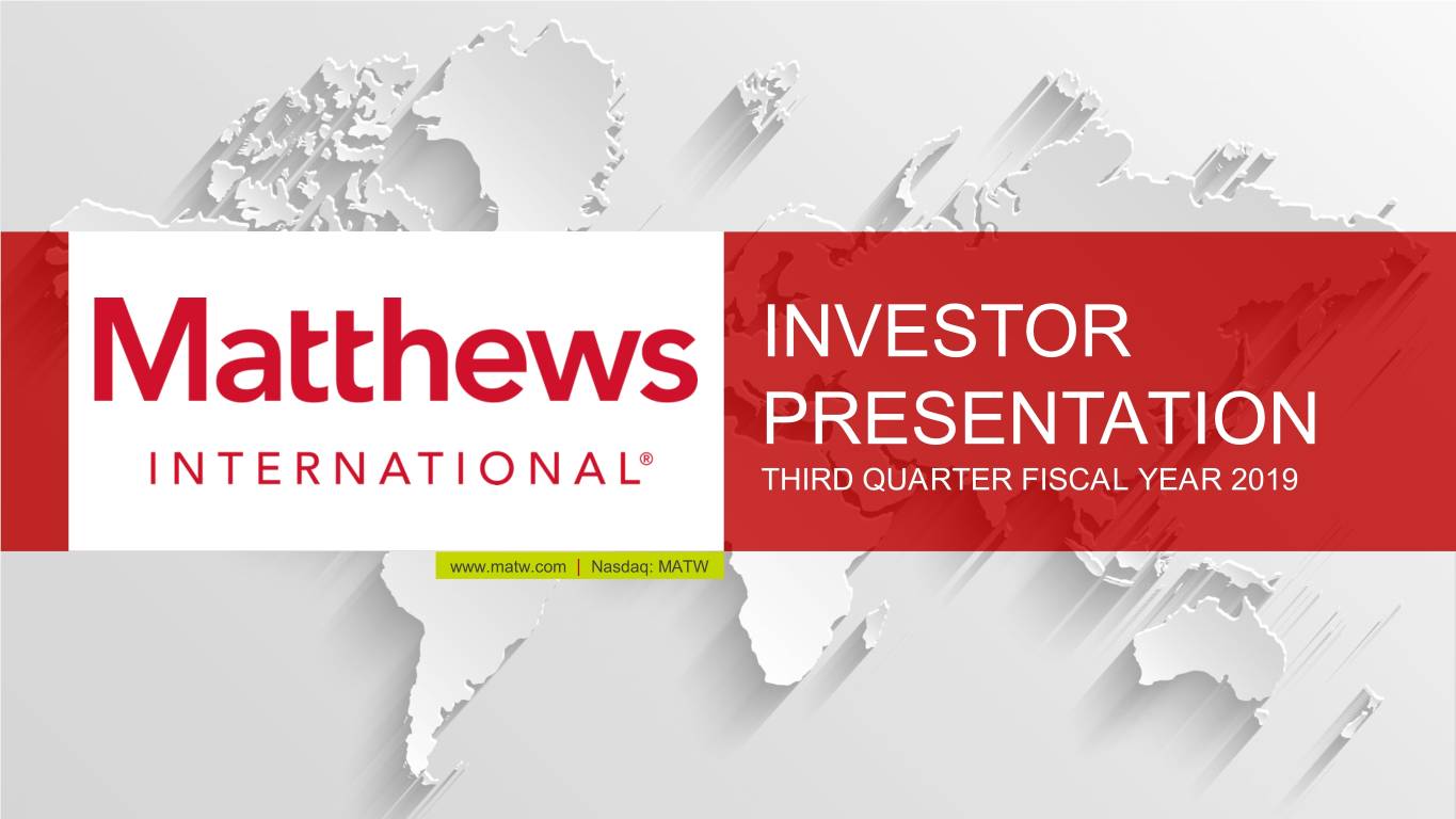 INVESTOR PRESENTATION THIRD QUARTER FISCAL YEAR 2019 www.matw.com | Nasdaq: MATW