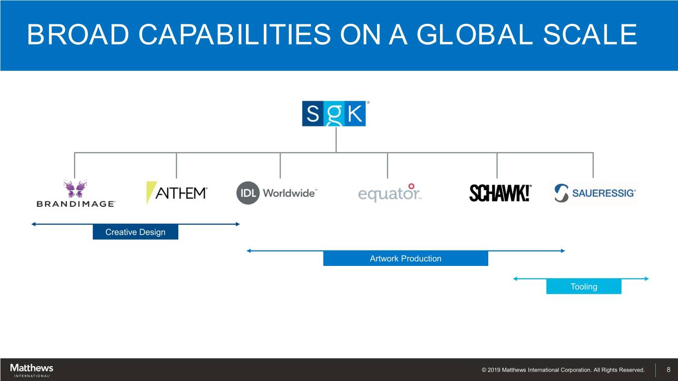 BROAD CAPABILITIES ON A GLOBAL SCALE Creative Design Artwork Production Tooling © 2019 Matthews International Corporation. All Rights Reserved. 8