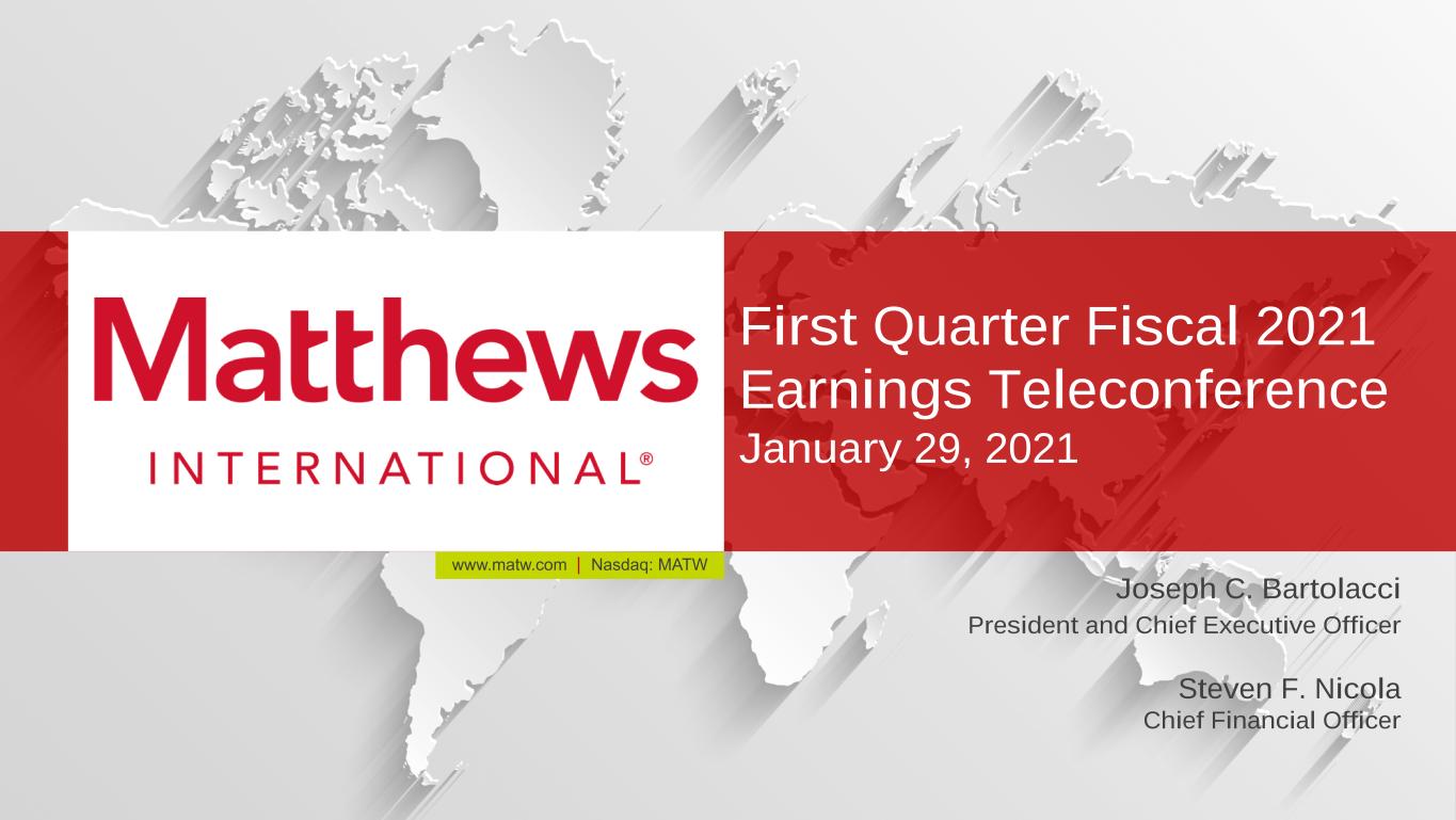www.matw.com | Nasdaq: MATW First Quarter Fiscal 2021 Earnings Teleconference January 29, 2021 Joseph C. Bartolacci President and Chief Executive Officer Steven F. Nicola Chief Financial Officer