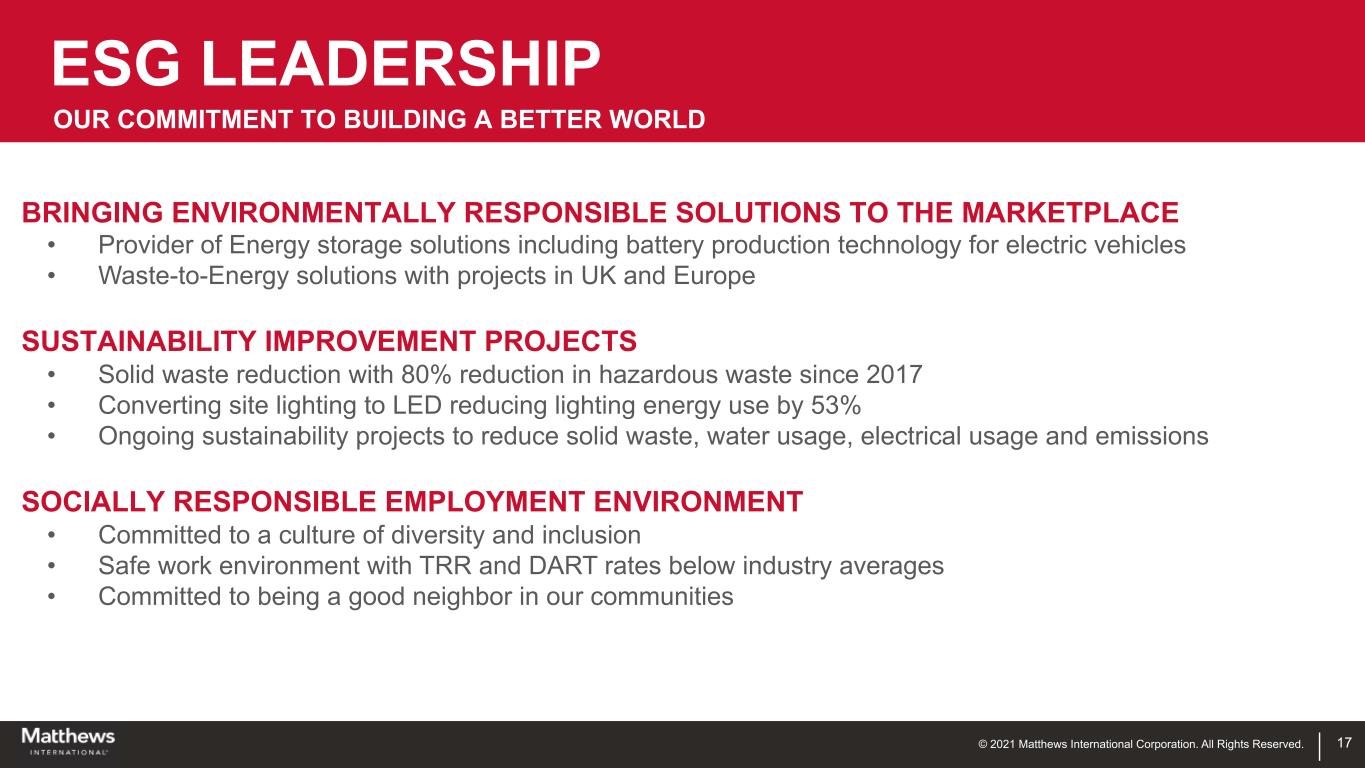 INVESTOR PRESENTATION THIRD QUARTER FISCAL YEAR 2021 © 2021 Matthews International Corporation. All Rights Reserved.