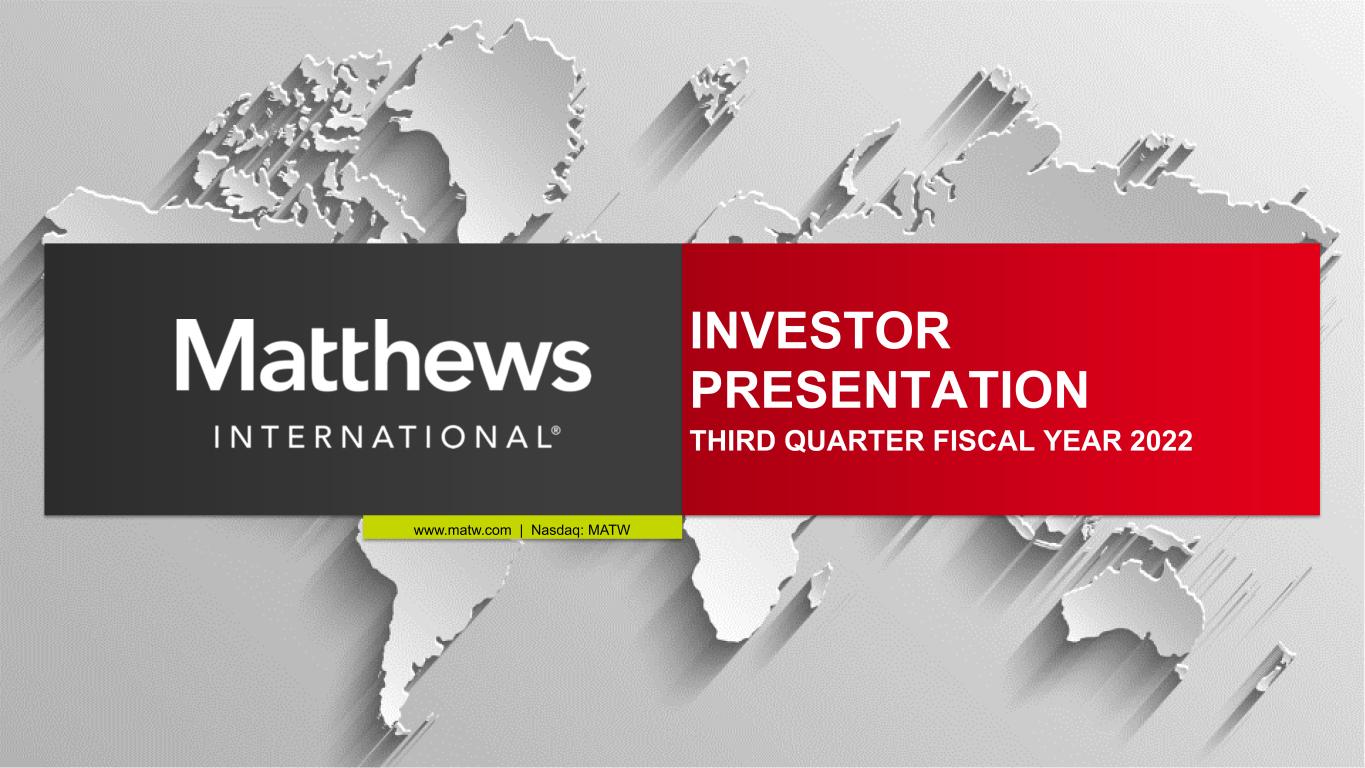 INVESTOR PRESENTATION THIRD QUARTER FISCAL YEAR 2022 www.matw.com | Nasdaq: MATW