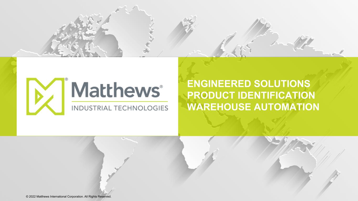 © 2022 Matthews International Corporation. All Rights Reserved.© 2022 Matthews International Corporation. All Rights Reserved. ENGINEERED SOLUTIONS PRODUCT IDENTIFICATION WAREHOUSE AUTOMATION