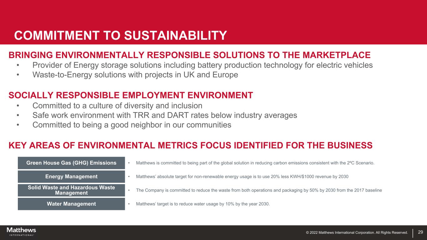 © 2022 Matthews International Corporation. All Rights Reserved. 28 ESG OVERVIEW