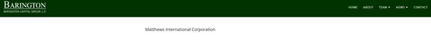 Barington Capital Group Releases Investor Presentation Outlining the Path to Maximizing Value at Matthews International Corporation